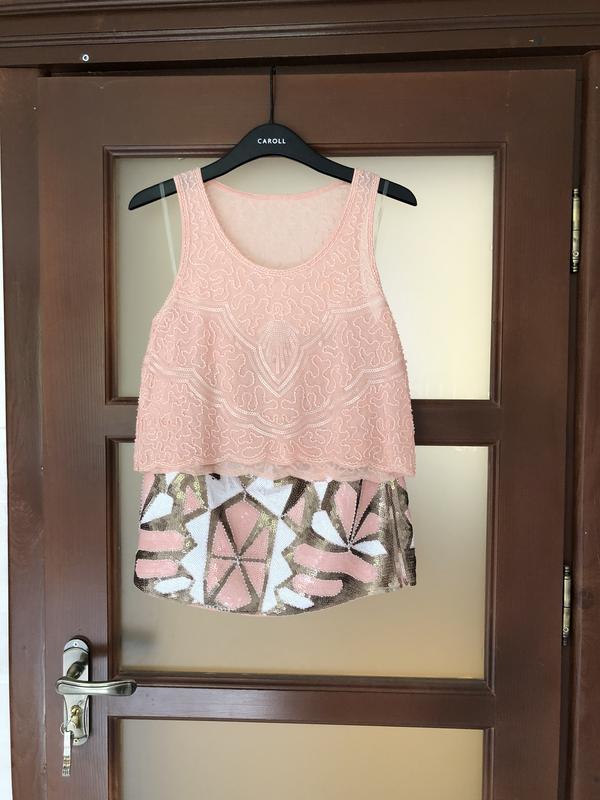 Топ і спідниця. Топ розшитий бісером і паєтка. Спідниця з паєтки. Розмір s. На ріст 158-160 см