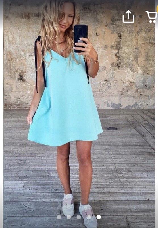 Легкий короткий сарафан с оригинальными завязками на плечиках