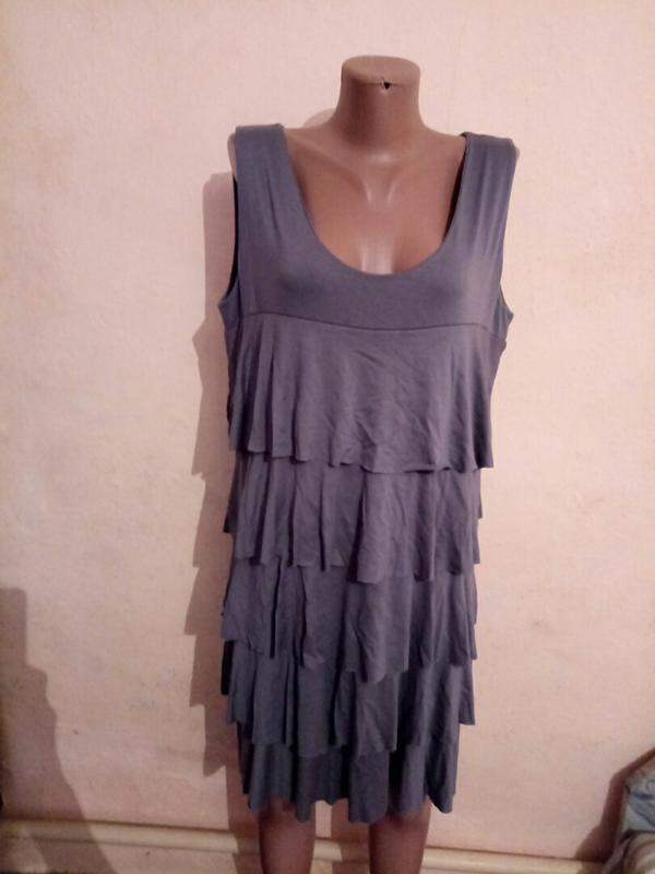 туника/сарафан/платье серого цвета с воланами ярусами, трикотажное (вискоза), квадратный вырез горловины, без рукавов, на широких бретелях, не светится, длина до колен. Отправка Укрпочтой или Новой почтой.