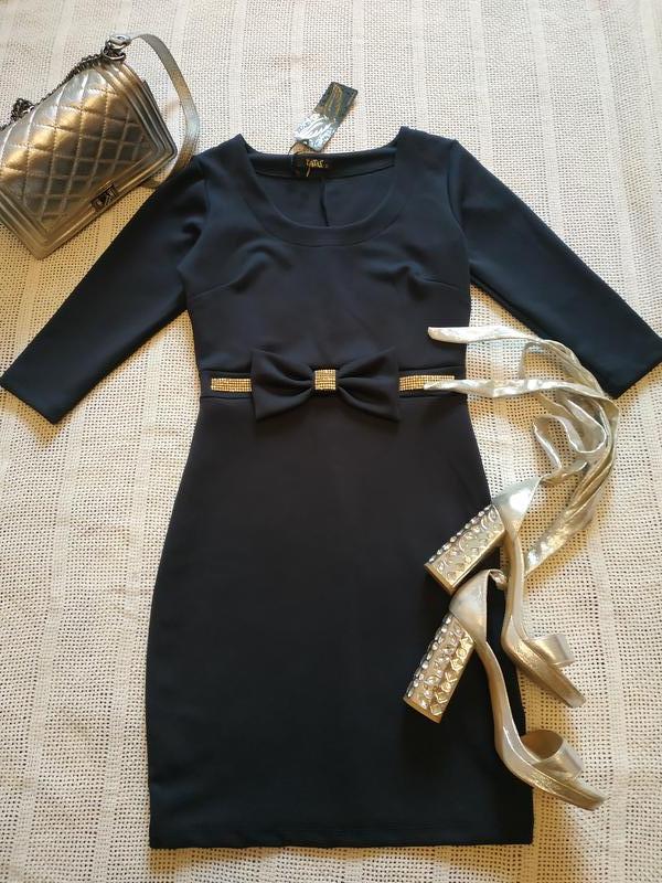 Синє вечірнє плаття, спереду бант, з боків прикрашена стразами. ПОГ - 43 см, ПОТ - 35 см, ПОБІДИ - 42 см, довжина - 90 див.