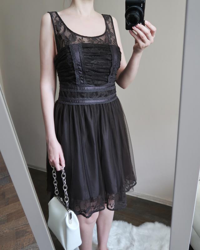 Размер указан uk12, сморите по параметрам: длина 95см пог 45 см пот 38 см Надето на S, мне большое. Верх выполнен из кружева, имитация корсета, снизу плотная подкладка. Низ из фатина, под ним плотная ткань с кружевом по подолу. Отлично садится по фигуре, подчеркивая достоинства. Доставка: 🌹- Знижки тільки при покупці від 2х речей! 📍 - ТОРГУ • примірок • наложного пл. (Дивіться відгуки) • ПОВЕРНЕННЯ - НЕМАЄ! ⛔ 📍 - бронь можлива тільки на оплату 24 години • Передоплата 100% • Доставка Новою Поштою (інші служби за попередньою домовленістю)
