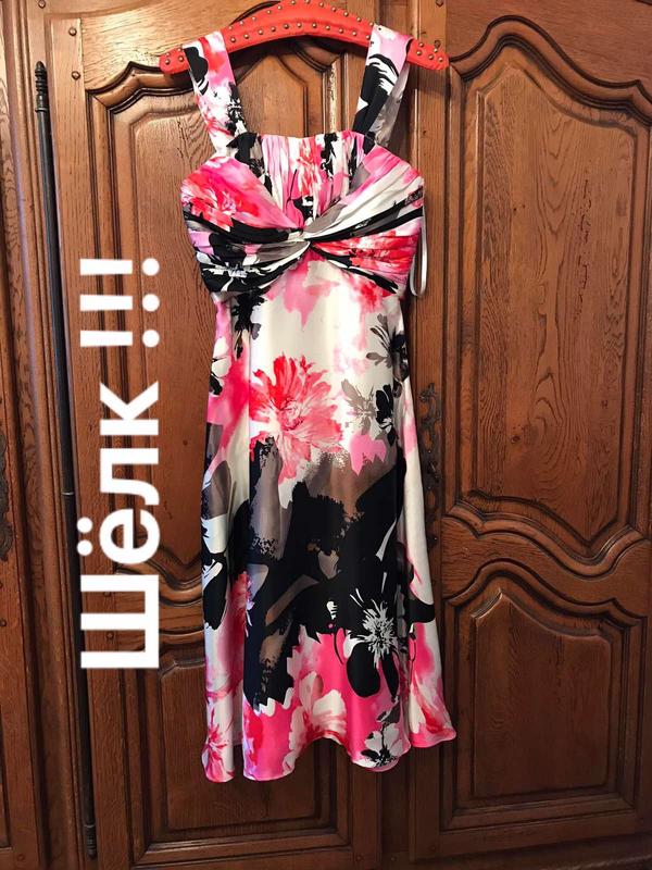 Шелковое платье,состояние новой вещи. Меряйтесь по замерам указанных в описании. Есть подкладка. Шёлк плотный, хорошо держит форму,практически немнеться. Длинна от плеча 113 Длинна от подмышки 91 Пог 42 Пот до 45 Поб до 67