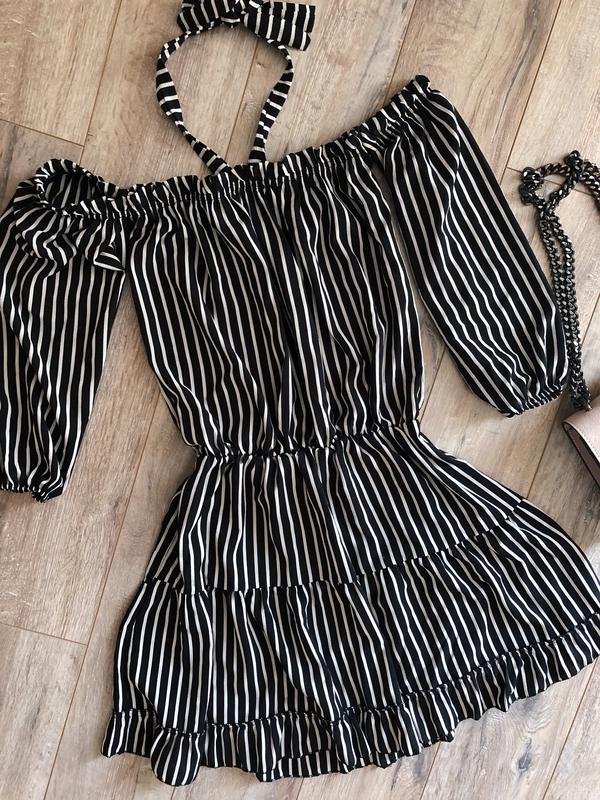 Стильна сукня в смужку, легенька, італійського бренду Milady. Підійде на S/M, довжина 80 см, пог 43 см, пот 30 см на талії резинка тягнеться до 51 см.