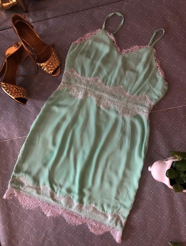 Дуже ніжне та миле плаття на бретелях з білим кружевом . Розмір -М, може піти і на повну С. Стан ідеальний.