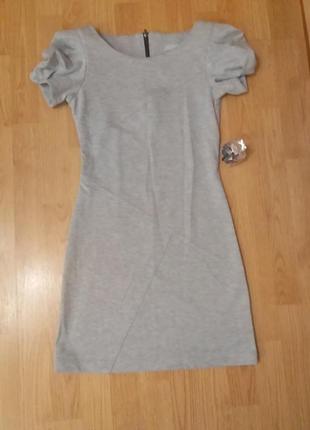 Трикотажне плаття з цікавими рукавами, приємного сірого кольору, в ідеальному стані. Розмір s