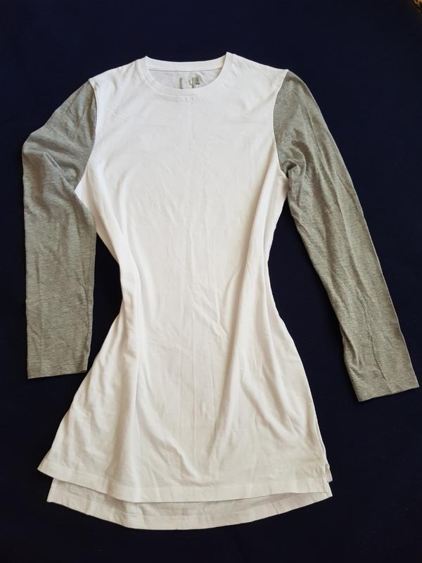 Спортивне асиметричне платтячко, може йти як подовжена кофта. Більше підійде високій дівчині, оскільки довгий рукав. Склад додаю на фото. Класичне біле, рукав сірий. Сток Asos, тому бірка зрізана. Повністю нове, по стану видно. ПОП 41см ПОГ 49см Рукав 66.5см Довжина 91см Дивіться інші мої оголошення, багато нового стокового одягу!