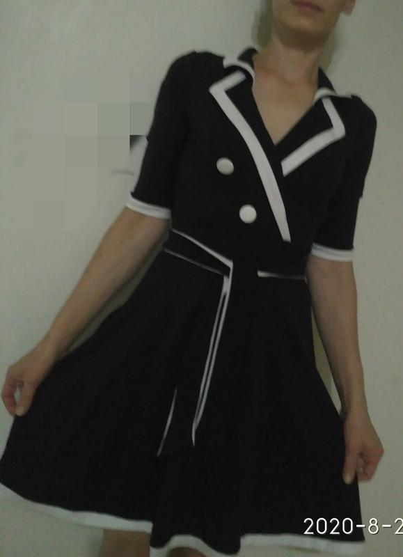 Платье состояние нового. Цвет темно - синий с белой отделкой. Надето на размер 46, рост 173. На нем бирка размер 44, но на мой 46-й село великолепно. на ощупь плотный трикотаж, хорошо тянется, практически не мнется. Пояс двухсторонний, завязывается по желанию. После стирки не гладила. Купила себе, а носить передумала, разонравилось. Замеры по запросу. Отвечу на все вопросы с удовольствием). Возврата, обмена нет. Отправка УкрПочта, Новая почта, после полной оплаты на карту. Доставку оплачивает покупатель.