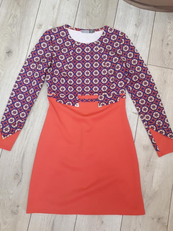 Очень красивое платье, за счет интересного пояска стройнит фигуру. Ткань гладкой фактуры, приятная к телу. Немного тянется. ПОГ 44 СМ ПОТ 38 СМ ДЛИНА 88 СМ ДЛИНА РУКАВА 60,5 СМ