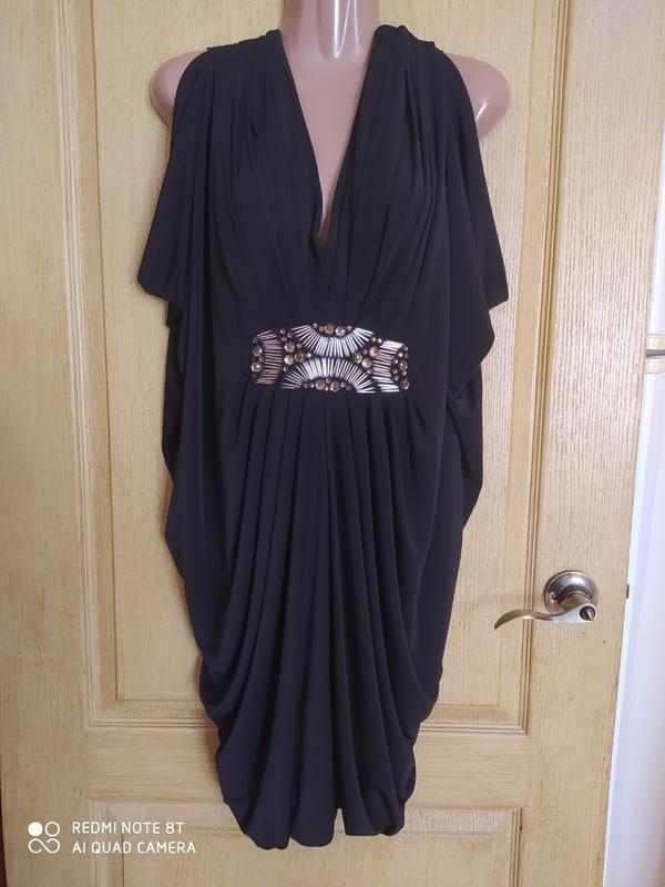 Красивое нарядное платье на трикотажной подкладке с оригинальным декором из бисера. Цвет черный. Качественная ниспадающая ткань, хорошо тянется, не мнется. По линии плеч и талии красиво задрапировано. Смотрится очень стильно. Размер 42-46 Замеры в спокойном состоянии: ПОГ 46 см, ПОТ 38 см, ПОБ 54 см, длина 97 см. СМОТРИТЕ ДРУГИЕ МОИ ОБЪЯВЛЕНИЯ. МОЖЕТ БЫТЬ ИМЕННО ВАША ЛЮБИМАЯ ВЕЩЬ ПОКА ЛЕЖИТ В МОЕЙ "ШАФЕ"