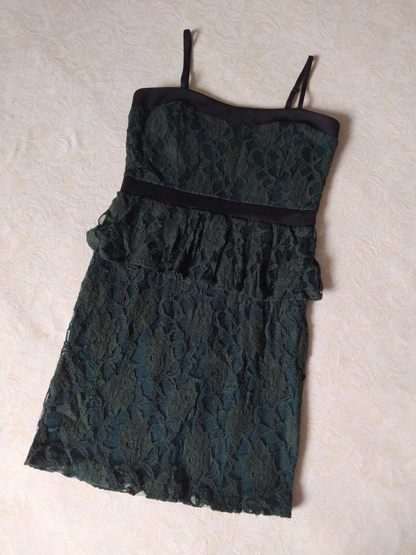 Мереживне плаття міді на брительках, темно-зелене, кружево, зелений