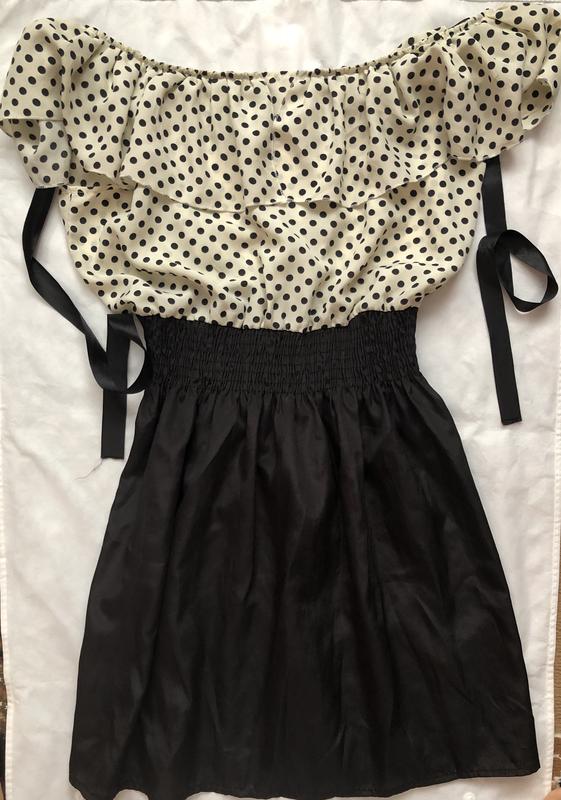 очень милое платье, верх плотный шифон в чёрный горох, красивая спинка немного открыта на завязке, талия на резинке