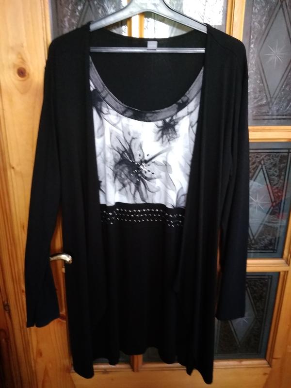 Довжина-84см.,талія-94см. обєм грудей-100см.. бедра-112см. Матеріал тянеться...