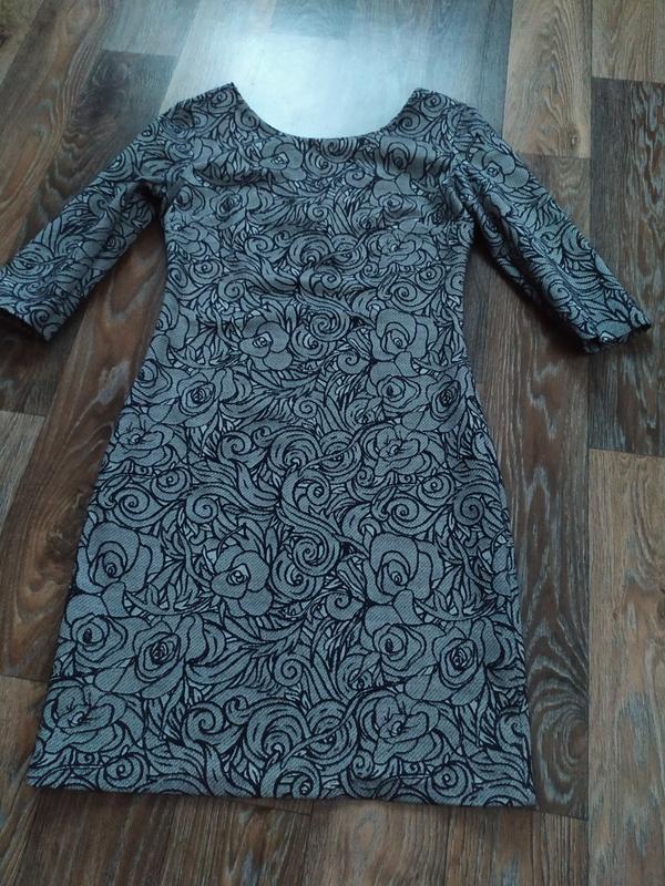 Очень нарядное платье. Длина 90 см. размер 46. Цвет серый с голубым оттенком с очень красивым нашитым узором по всей длине в виде роз