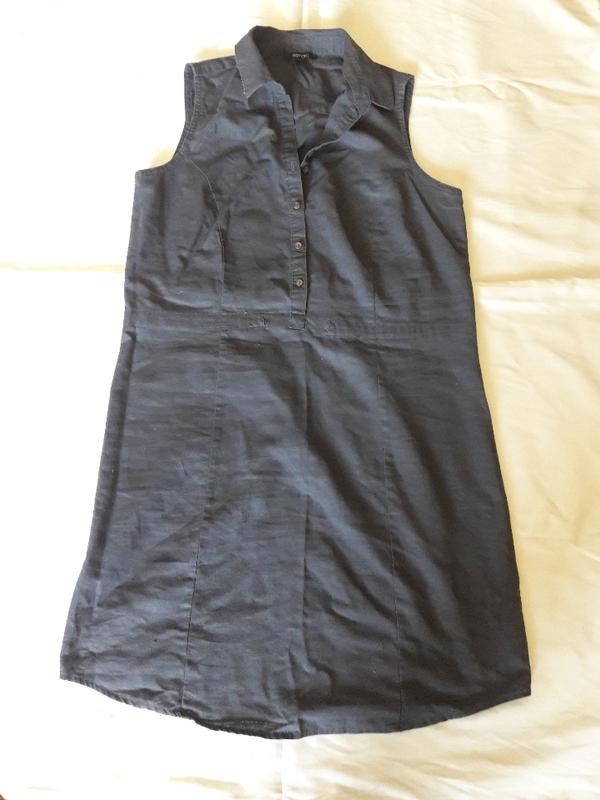 Сукня темно - сірого кольору. Бренд Esmara. Розмір 38.ПОГ 51 см, ПОТ 49см, ПОБІДИ 56 см, довжина 97см. Бавовна 55 %, льон 45 %. Загублений шнурок - пояс.