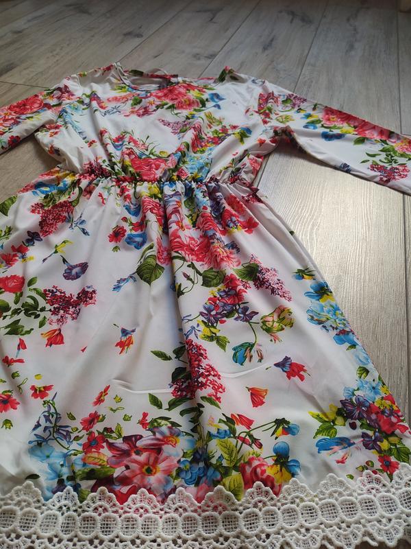Очень красивое платье в цветочный принт. Лёгкое, воздушное. Размер с-хс. Идеальное состояние, одето 1 раз!!!- никаких дефектов. Замеры на фото.