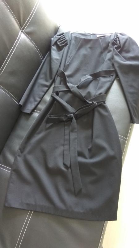 Шерстяне плаття, рукав-буф, спинка на замку. Заміри ПОГ 45, ПОБ 48, довжина 94. В складі тканини %lykra. Пояс вшитий в бокові шви.