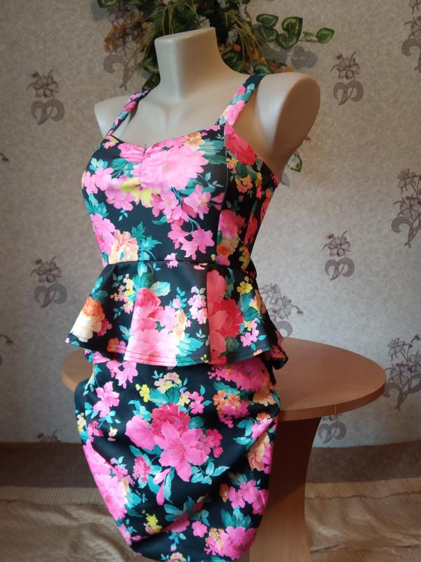 Стильное оригинальное платье с яркой цветочной расцветкой.Эфектно смотрится баска.Стрейч.Ложится по фигуре.Хорошо и удобно ложится по груди.Есть розмеры.