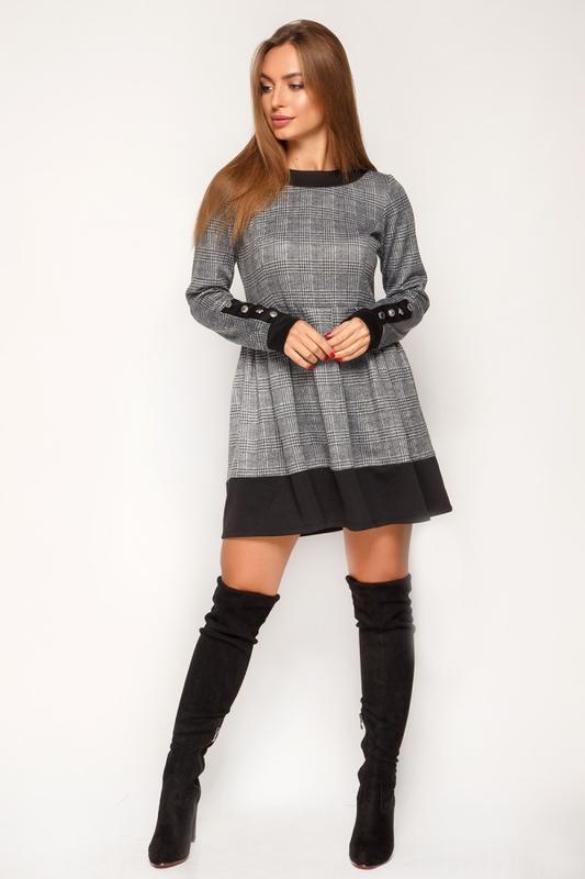 Платье мини с черной отделкой и длинным рукавом декорированным пуговицами. Отличный повседневный вариант Ткань: Французский трикотаж