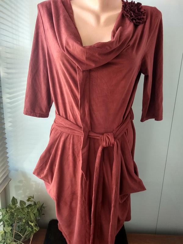 Платье р.XL, цвет терракотовый. Пог-50см., Пот-42см., Поб-56см., Длина -91см., Длина рукава-37см. Есть боковые карманы, по горловине хомутик