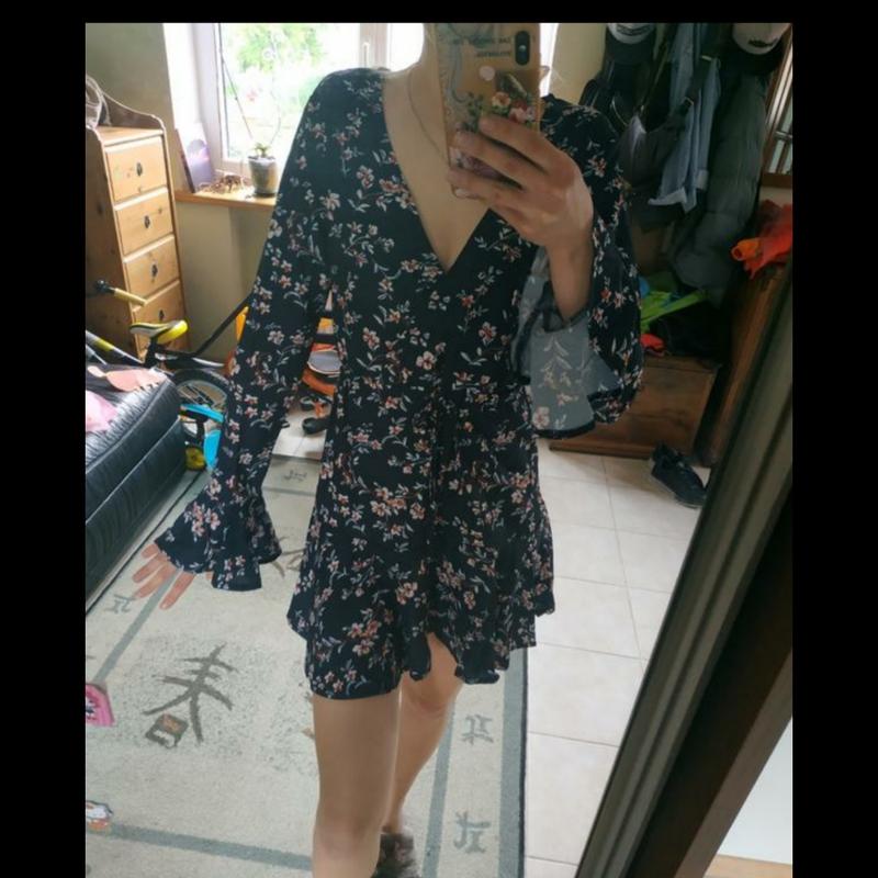 Бохо платья цветы, новое, бирки не было. Размер Хс-С, или небольшая М. Замеры по запросу. Темно синий цвет. Последние фото наденет на рост 170, 83/60/87 Пог 45, пот 40/стягивается шнурком, поб 47-48, рукав 64, плечи 37, длина 84
