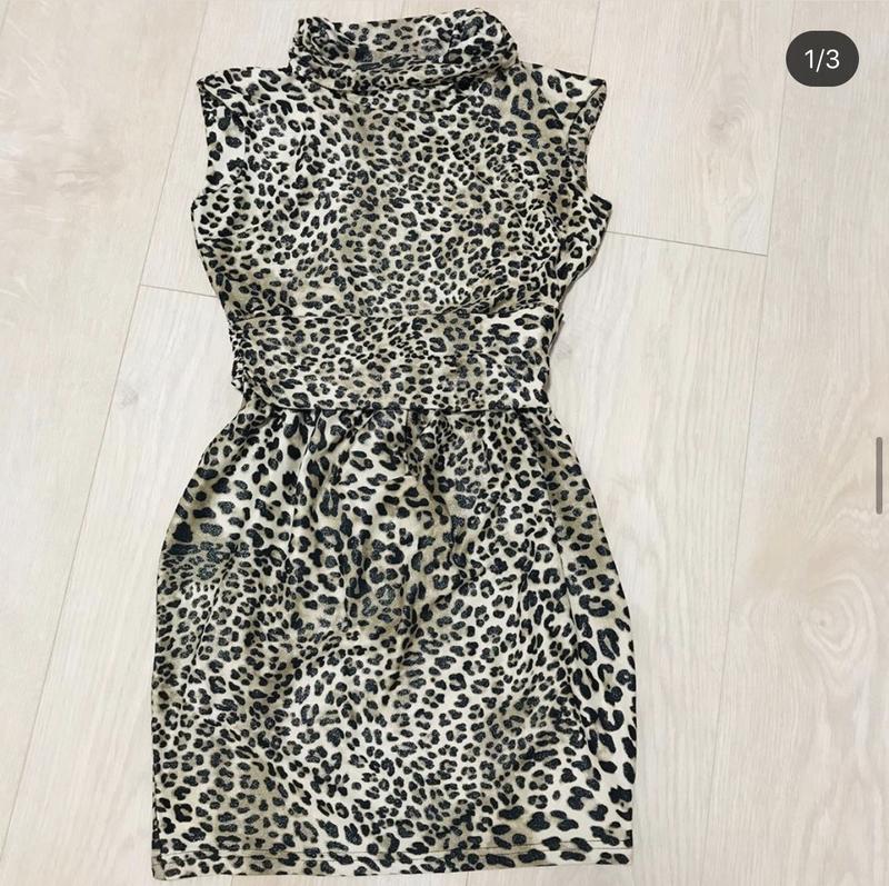 Тигровое платье. Очень красиво садится по фигурке. Ткань, нежно приблескивает. Застегивается на молнию сбоку. Размер С, подойдёт и на ХС Длина от плеча-76, ОГ-39, ОТ-31, ОБ-42-46. Новое, без бирки