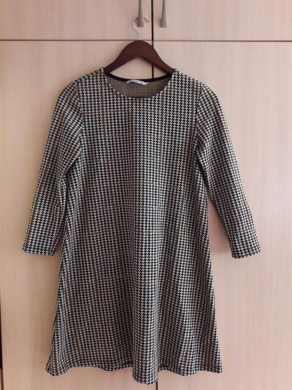 Плаття (сукня) Stradivarius. Розмір - S. Сукня вільного крою, але гарно підкреслює верхню частину та візуально робить стрункішою. Принт - гусяча лапка. Стан - чудовий, без дефектів.