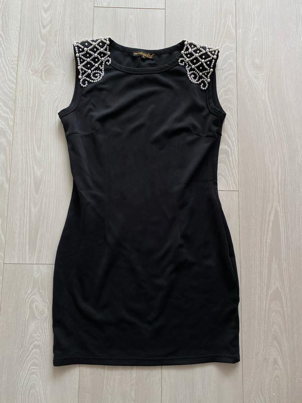 Чёрное платье с жемчугом , как новое ,покупалось на мероприятие