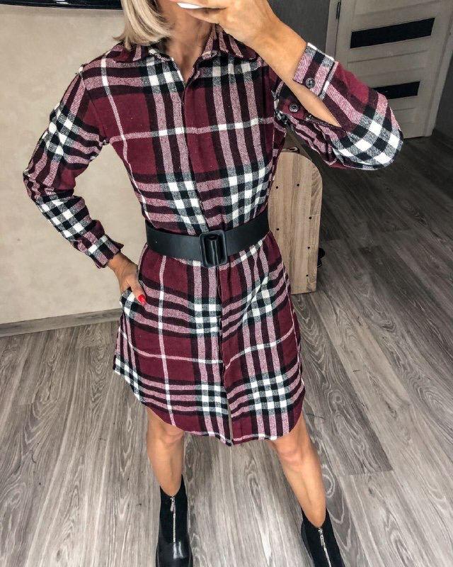 Платье-рубашка (пояс отдельно) Мод: 116ЕЕ Размеры: 42-44, 46-48 Цвета: темно-синий, бордо Ткань: фланель(хлопок+шерсть) Ремень на фото + 40 грн Теплое платье из модной в этом сезоне клетки. Кнопки скрыты планочкой. Фото реал!
