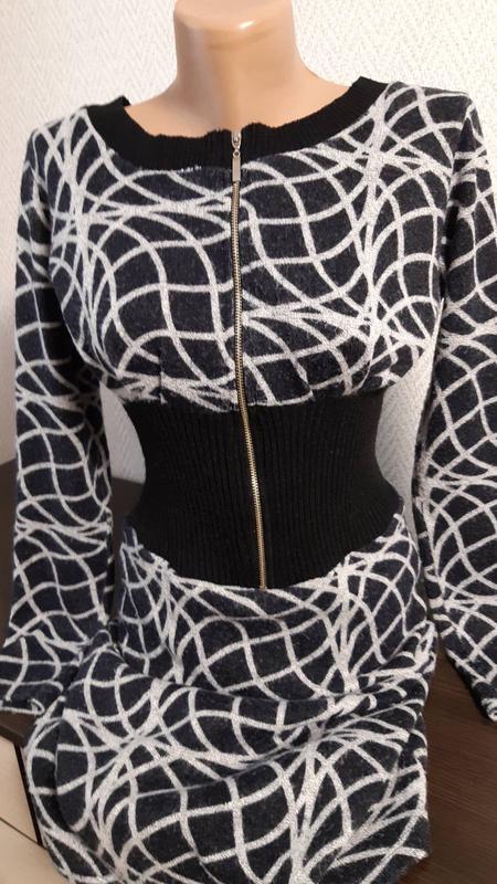 Тёплое платье. Застёгивается спереди на молнию {до талии}. Комфортное и уютное платье для осенне-зимнего периода. Длина - 83 см., длина рукава - 57 см., полуобхват груди - 44 см.