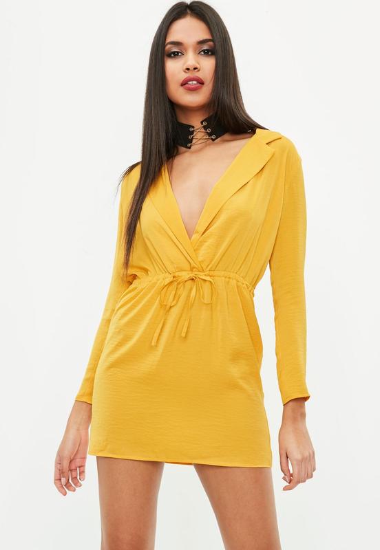 Жовте міні сукня - сорочка, туніка від відомого бренду Missguided. Виглядає дуже красиво, жіночно, стильно і дорого! Заміри: довжина 82см., ПОГ по спинці 52см., ПОБІДИ 56см.