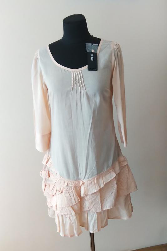 Датский качественный бренд Fransa. Летнее платье из тонкого хлопка свободного кроя на отдых, пляж. Подойдет на купальник. Низ обработан воланами из шитья. Сбоку есть молния. Без дефектов. Между подмышками 44 см Вся длина 90 Рукав укороченный 44см Новое с биркой.