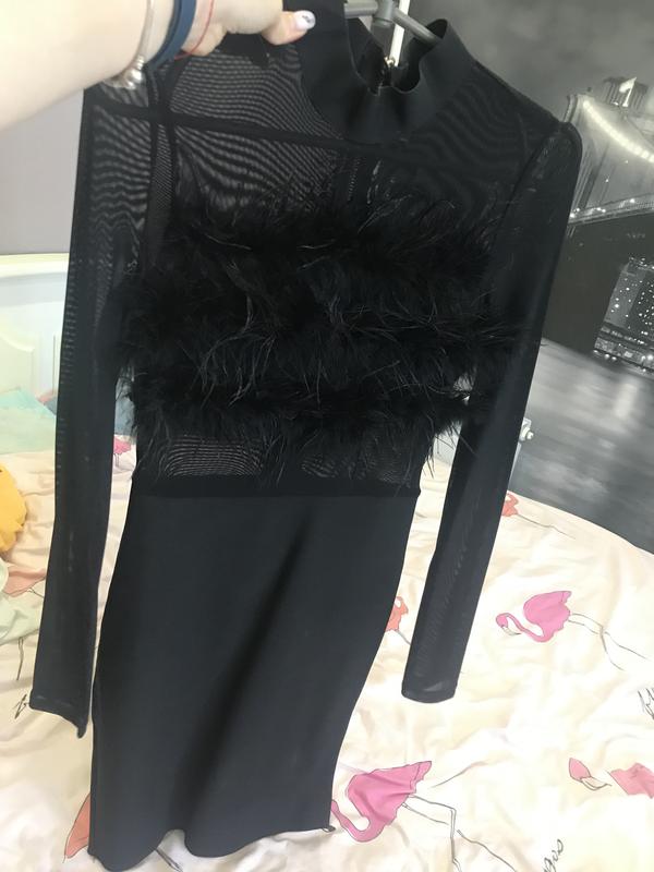 Очень красивое вечернее платье, одевала его на выпускной один раз, низ из плотной резинки , верх сетка на груди перья плотно закрывают грудь