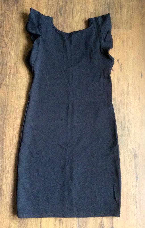 Платье с рюшиками на рукавах и красивым вырезом на спине, размер s, подойдёт на xs. Хорошо тянется. Длина по спинке 68 см, ОГ 30 см, ОБ 34 см