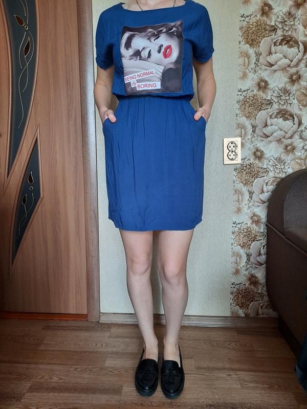 Супер легкое летнее платье Sorry Mama в синем цвете с карманами Размер М Ткань легкая, приятная к телу На поясе резинка, не тугая, не давит длинна 86 см длинна юбки 44см