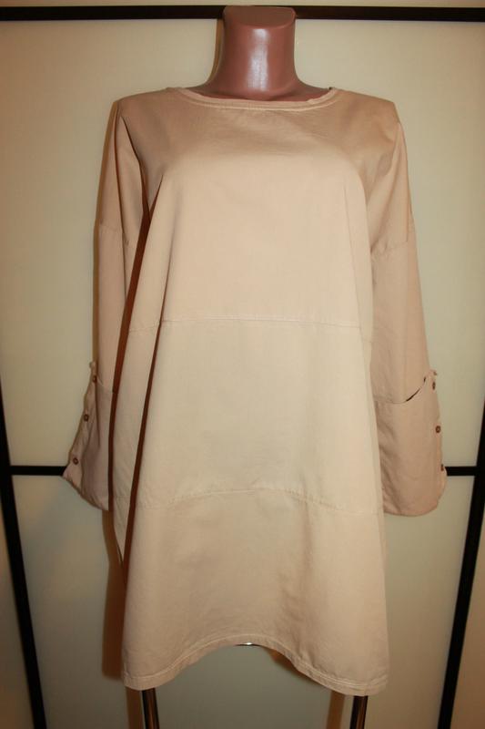 Стильное платье туника оверсайз ZARA В идеальном состоянии! Состав: 100 % котон, качетвенный материал, спинка котон трикотаж Размер указан S , на 42-46 р, ориентируйтесь на замеры. Манекен 44 размера. Замеры: длина переда от плеча- 85 см ПОГ- 69 см ширина внизу- 58 см длина от горловині до конца рукава- 68 см Возврат не предусмотрен.