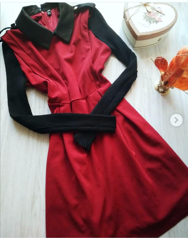 Актуальне бордове плаття з чорним коміром і рукамвами(рукава трикотажні). Розмір вказано XXL, але більше підходить на М. Стан відмінний.Довжина ззаду по центру 81см, спереду по центру 79 см, ширина від пахви до пахви 47см, ширина в талії 42см, довжина рукава 62cm. Тканина тягнеться. Відправка Укрпошта, Нова пошта, Інтайм, самовивіз. Оплата на карту 100% , часткова передоплата за пересилку при накладним платіж, готівкою при особистій зустрічі.