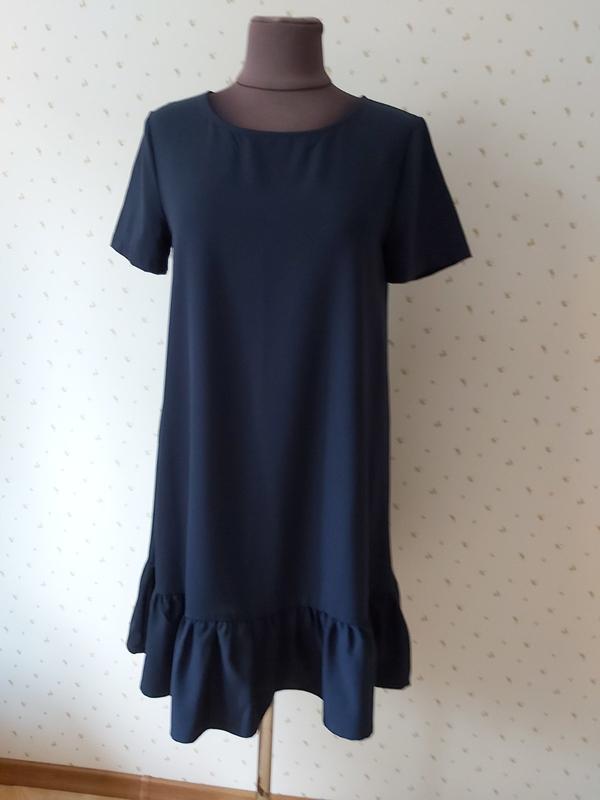Платье тёмно-синего цвета, слегка свободного покроя, интересная модель, платье можно использовать как повседневное так и нарядное, приятное к телу, ткань не мнётся, отличного качества (добротное), красивое!