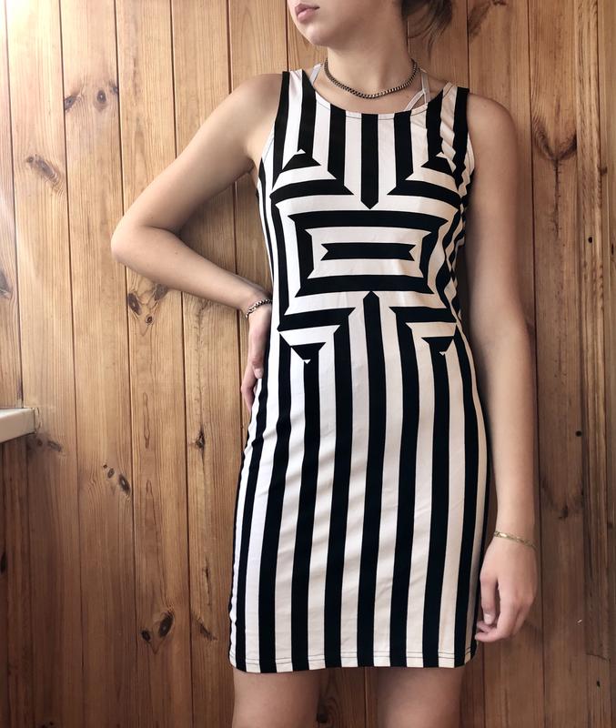 H&M Divided короткое платье в полоску черно-белое с принтом X на груди, новое с биркой, тянется Размер М подойдёт на S-M Длина 85 ПОГ 40 поб 43 95% cotton 5% elastane