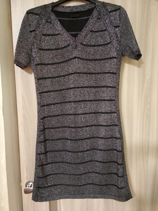 Чорне з сріблястою ниткою, дуже красиво виглядає, пряме. Нюансів немає. Заміри: плечі - 39 см, рукав - 21 см, довжина - 89 см, пог - 44 см, пот-41 см, побіди - 47, тягнеться до 52 див. Одягати можна і під високий чобіт, і під черевики спортивного стилю, і під туфлі. Трикотажне, досить тепленьке, носила навіть взимку. Додаткові фотографії надам на всі питання відповім, пишіть. Оплата на картку Приватбанку повернення немає.