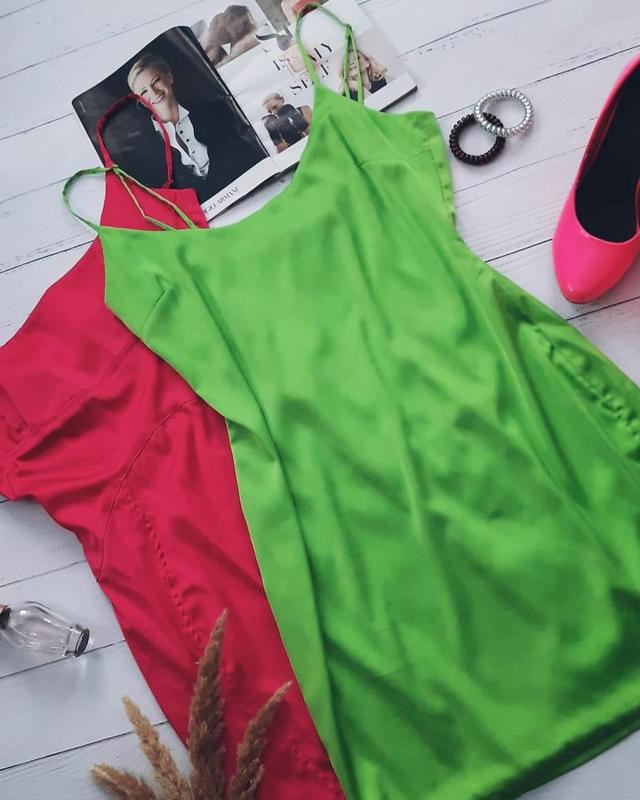 Атласное мини-платье в салатовом цвете на тонких брителях. Материал приятный к телу, немного тянется. Платье абсолютно новое, но бирочка срезана. Размер 12. Полуобхват груди - 42 см. Полуобхват талии - 35 см. Полуобхват бедер - 47 см. Длина - 79 см.
