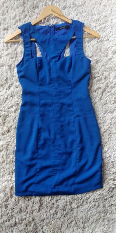 Платье синее с вырезами. Смотрится очень симпатично.