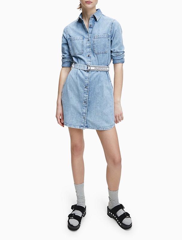 Платье-рубашка с лого поясом. Спереди вверху карманы, а также сбоку. На пуговицах