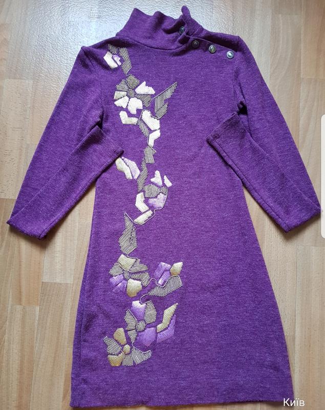 Тёплое, яркое платье, шерсть. Красивая спинка. Рукав длинный, собирается в гармошку. Размер S,M