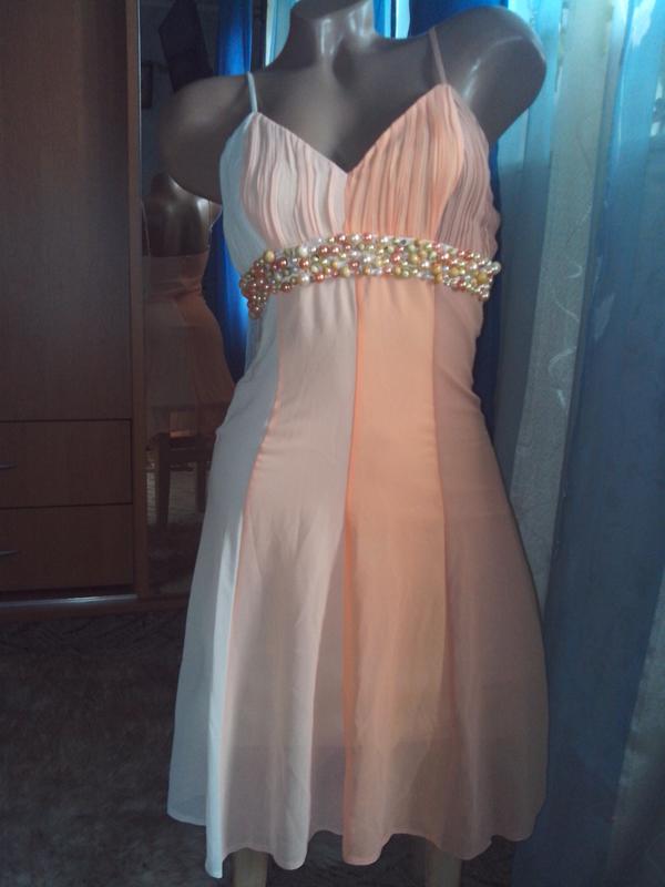 Девочки, оочень нежное, красивое платье с переходом цвета, под грудью ненавязчиво и со вкусом украшено разноцветными ( но в тона платью ) мелкими, средними и большими жемчужинками ( надёжно пришитыми! ), на тоненьких ( регулируемых ) бретельках, спинка на длинной незаметной молнии, полностью на подкладе. Размер указан 36, наш 42-44, замеры: длина + - 85 см, ОГ до 86 см, под грудью 35 см ( там, где жемчужины ), ОТ до 70 см, ОБ до 92-94 см. Ткань, состав: верх - шифон, подклад - 95% полиэстер, 5% лайкра, тянется. Бренд - Live Forever, made in Turkey. Спрашивайте, пожалуйста, оочень красивое и нежное;-)... Новое, сток. Доставка УП ( + 20 грн. ) или НП;-)...