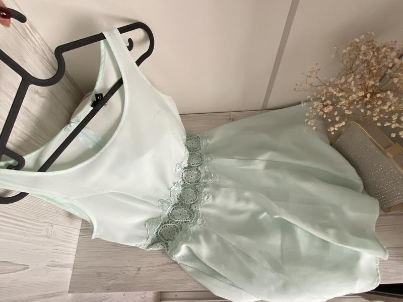 Тонке плаття, трішки просвічується.🌸 По талії йде вишивка мереживом. Ззаду зашпиляється на замок☘️ З середини на замку трішки жовта плямка, {видно на фото}, яку не замітно. Спідниця сонечком, з підкладкою ПоГ 41см ПоТ 34 Висота по задньому шву 78см