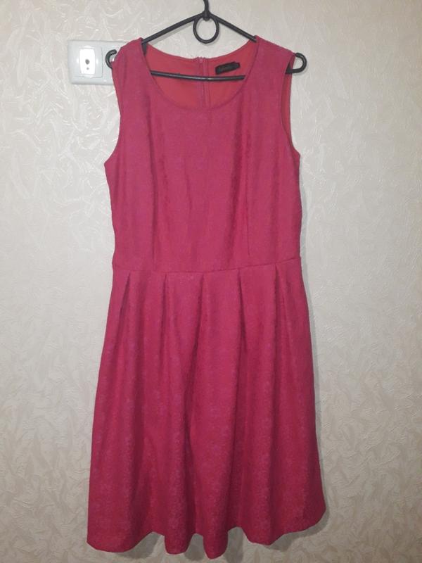 Колір-фуксія. Яскравий насичений колір. Дуже красиве мереживо. Ззаду на блискавці, тягнеться. Розмір написаний 50, большемерит, носила на 52/54. Параметри 110/90/120, тягнеться.На ріст 172см довжина за коліно. Дуже гарно сидить на фігурі.