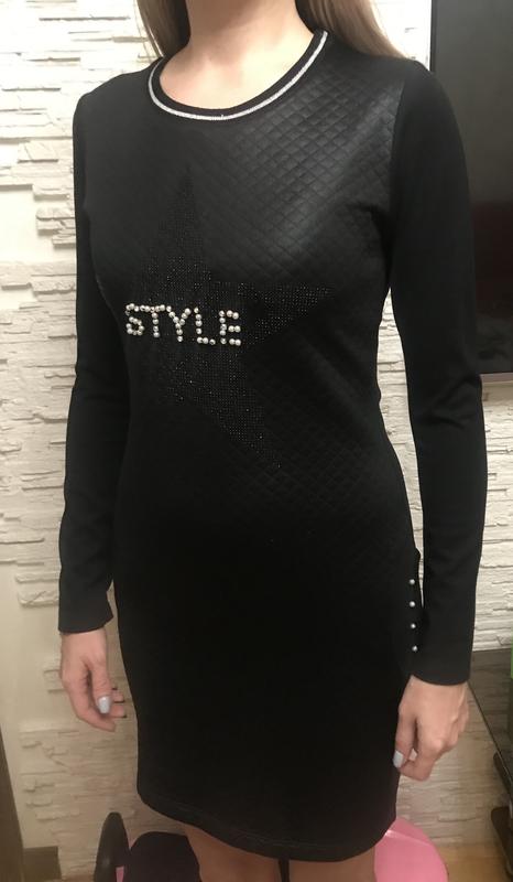 Нарядное стрейчевое платье плотное, звезда из камней, бусины все на месте по бокам кармашки размер с-м