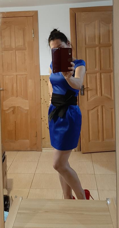 Красиве волошкове платячко.Тканина якісна не тягнеться,плотна. Ззаду має потайний замочок по цілій спинці.Має дві кишеньки.Можна одягати з пояском. Одягнуте один раз на корпоратив.Стан нового. Заміри: Довжина-76см, пот-33,пог-40см. Надішлю укрпоштою, новою поштою після повної передоплати на карту приват, будь ласка враховуйте комісію банку.