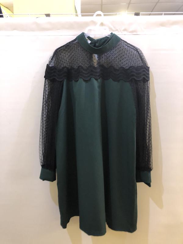 Платье и рукава ажур+ сеточка в черную набивную точечку. Красивый цвет. Есть с и м. Замеры с: пог-50, пот-56, поб—64, дл-90