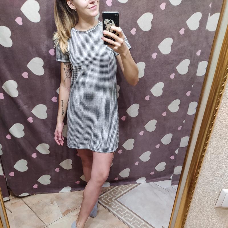 Платье короткое Pull&Bear белое в чёрный горох. Размер S. Хорошо тянется, приятный к телу материал. Доп. фото по просьбе.
